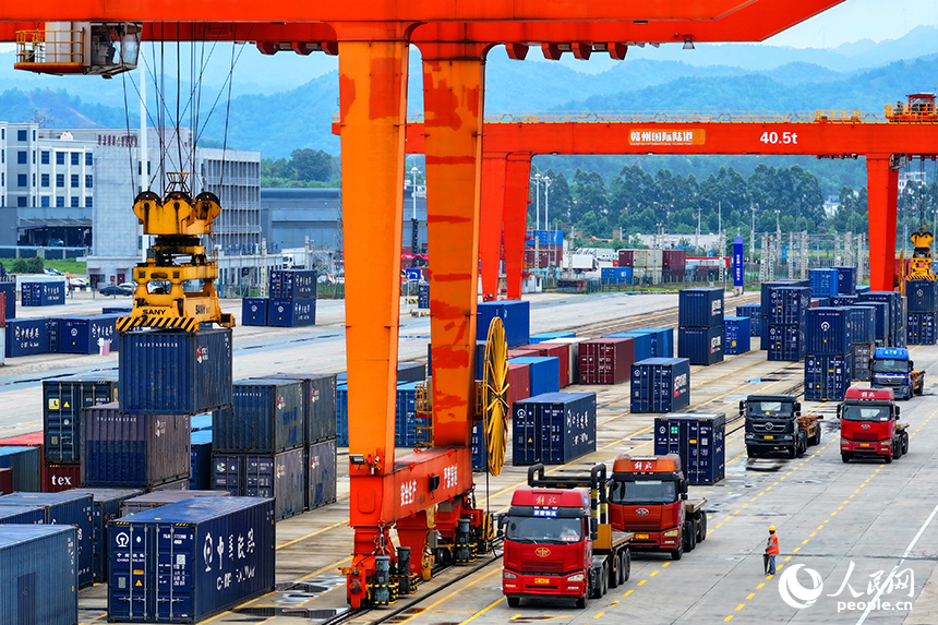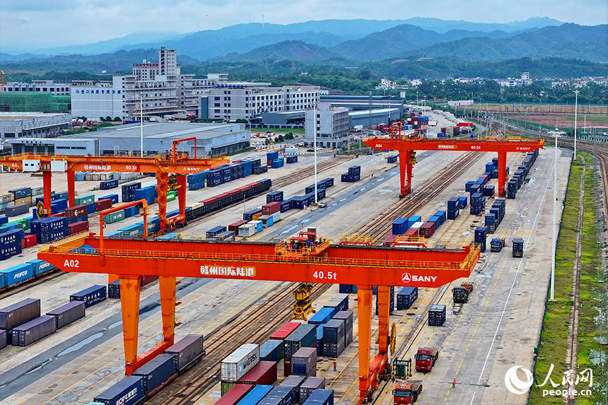 江西赣州南康区:国际陆港货运繁忙有序